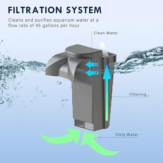 - POWERFUL FILTRATION SYSTEM - Built-in filter quietly cycles water at 45 GPH, removing waste and debris to keep water clean. Uses Koller Products Small replacement cartridges for long-term water quality