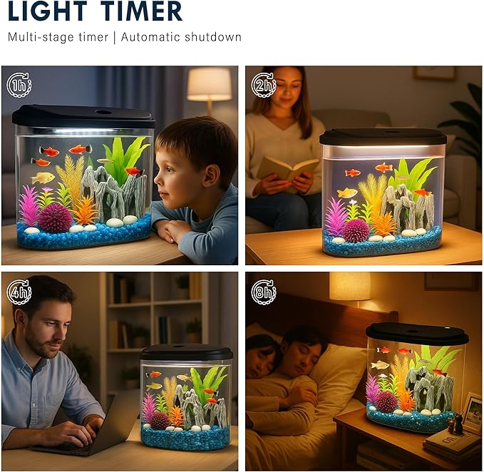 - CONVENIENT TIMER WITH MEMORY - Features 1H, 2H, 4H, and 8H light timer that resets daily. Lights turn on at the same time every day, perfect for consistent lighting in a small fish tank setup