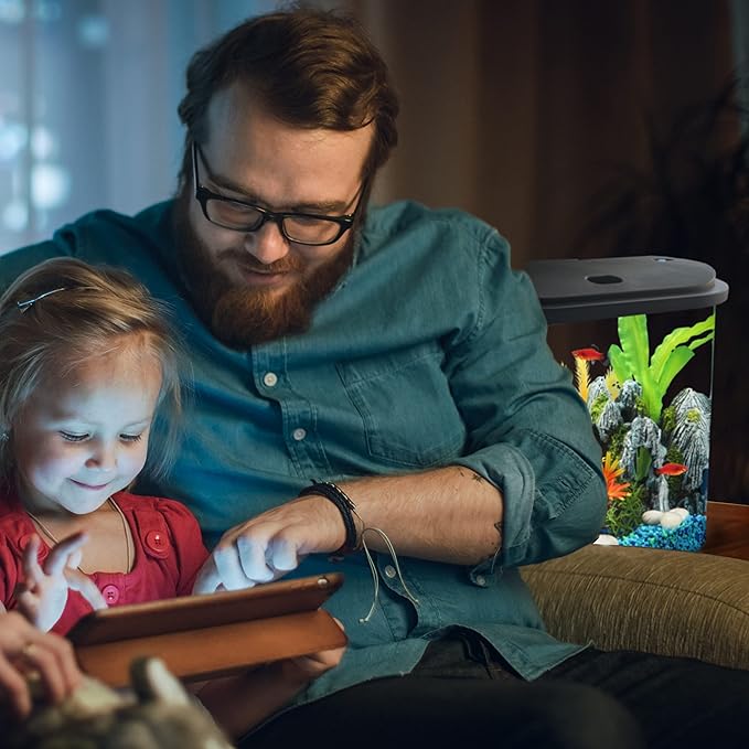 - ENERGY-EFFICIENT LED LIGHTING - Bright LED lighting with 7 color options: white, blue, green, amber, aqua, purple, and red. Makes this betta fish tank a vibrant decor piece for any room