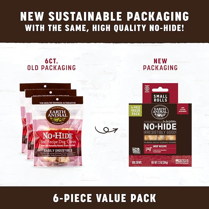 Earth Animal No Hide Small Long Lasting Dog Chew Rolls, Beef - 6 Count