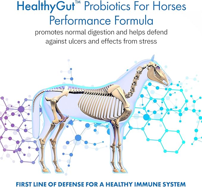 - PROBIOTICS FOR HORSES: HealthyGut Probiotics for Horses Performance Formula holistically promotes normal digestion, helps defend against ulcers and effects from stress, helps provide relief from digestive upset or antibiotic use, and aids general hind gut support in your horse