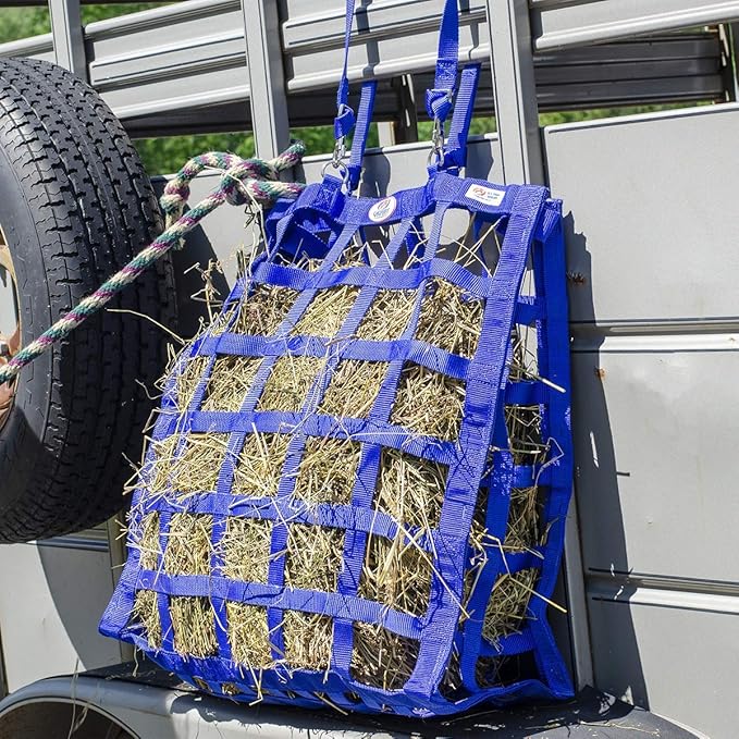 - HOLDS 2-3 FLAKES OF HAY - this 24x10x24" hay bag with 3.5x3” rectangular openings holds approx. 2-3 flakes of Timothy, Orchard, Alfalfa, or any other type of hay. Our hay bags were designed to minimize frustration and can be stuffed in seconds.