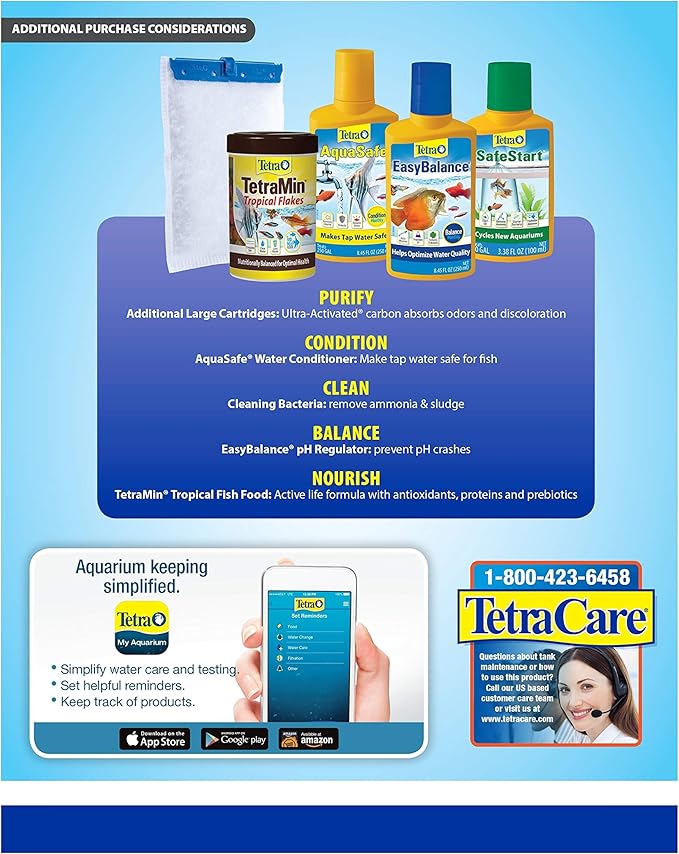 - CARTRIDGE REFILLS: Change cartridges monthly; uses large-sized Tetra Whisper Bio-Bag Filter Cartridges (refills sold separately).