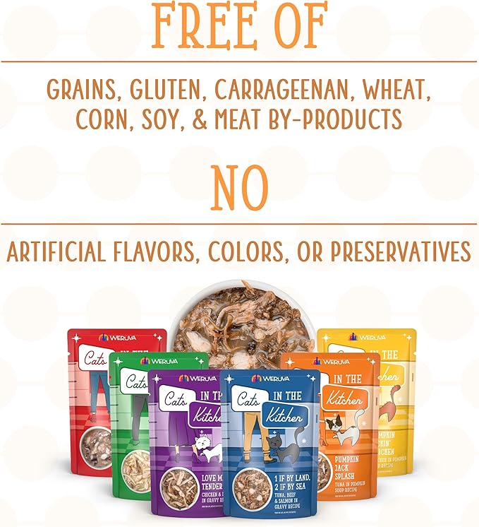 - Cats in the Kitchen - Weruva’s selection of unique recipes that are packed with premium proteins in a delicious gravy - perfectly crafted for your kitchen carnivore!