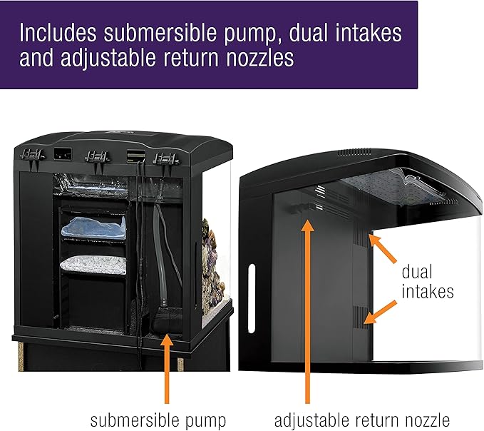 - ๐ GREAT FEATURES โ Includes quiet submersible pump, dual intakes and adjustable return nozzle. Compatible with all existing BioCube accessories. Fish, corals, substrate and dรฉcor are sold separately.