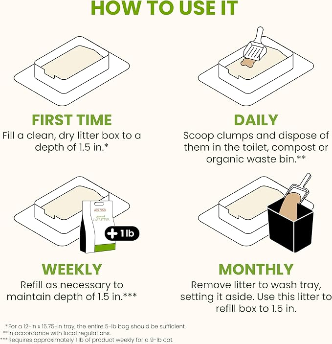 - SAFE, NATURAL and NON-TOXIC The litter is produced using only vegetable fibers and it’s additive-free, so it’s safe for your cat and the whole family