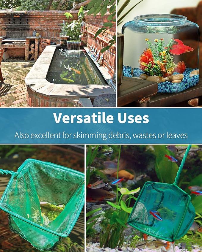 - Versatile Use: Perfect net to securely catch or transfer fish or shrimp. Also excellent for skimming debris, wastes or leaves from aquariums, small ponds or pools to keep them clean.