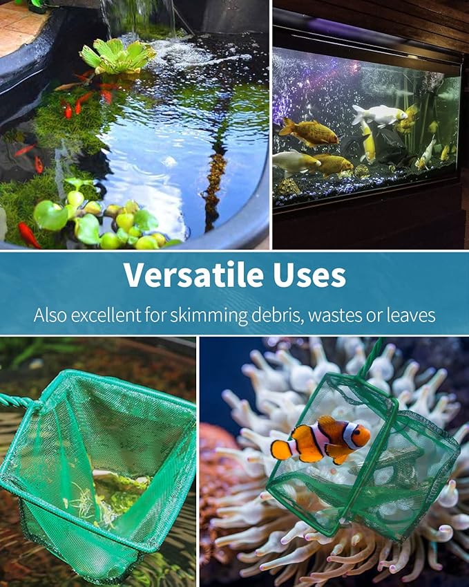 - Versatile Use: Perfect net to securely catch or transfer fish or shrimp. Also excellent for skimming debris, wastes or leaves from aquariums, small ponds or pools to keep them clean.