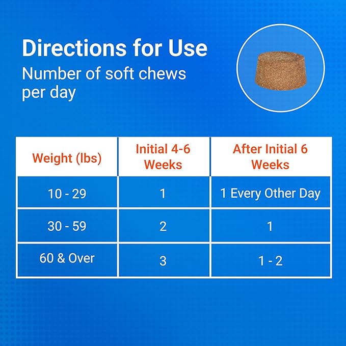 - Tasty Soft Chews for Daily Use - Cosequin comes in a tasty soft chew, making daily administration easy and convenient.