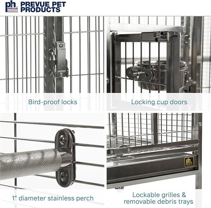 Prevue Pet Products Stainless Steel Play top Bird Cage, Stainless Steel, Medium