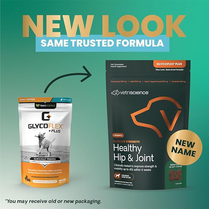 - Glucosamine for Dogs: Ultimate Strength Healthy Hip & Joint (previously GlycoFlex Plus) is our strongest hip and joint supplement for dogs, with powerful levels of active ingredients that work together to help maintain mobility, lubricate joints, and support flexibility