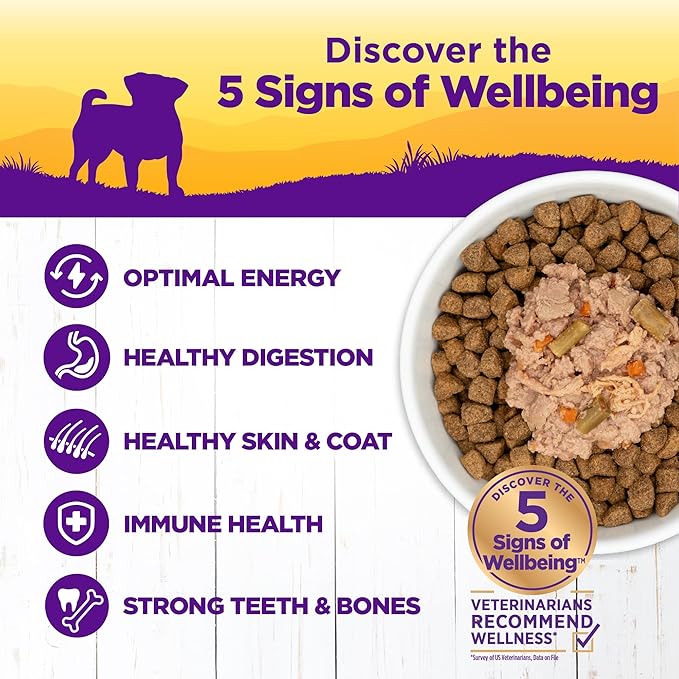 - ENJOY A LIFETIME OF WELLBEING: High quality proteins and antioxidant rich veggies are expertly balanced to deliver a complete diet packed with the nutrients your small breed dog needs to thrive
