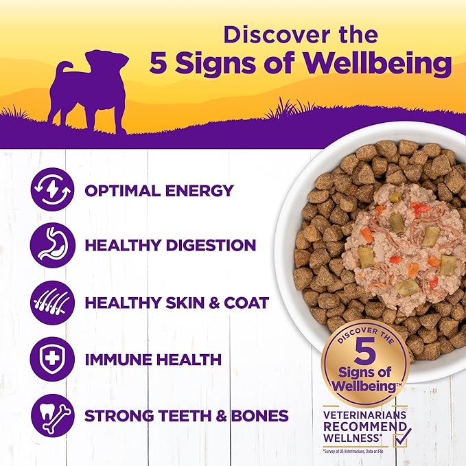 - ENJOY A LIFETIME OF WELLBEING: High quality proteins and antioxidant rich veggies are expertly balanced to deliver a complete diet packed with the nutrients your small breed dog needs to thrive