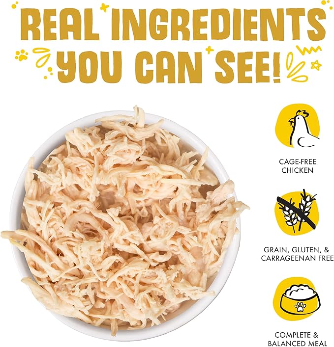 - Thinly shredded cage-free boneless, skinless chicken breast is the primary ingredient in these recipes - all in a delicious gravy even, picky cats can’t resist!