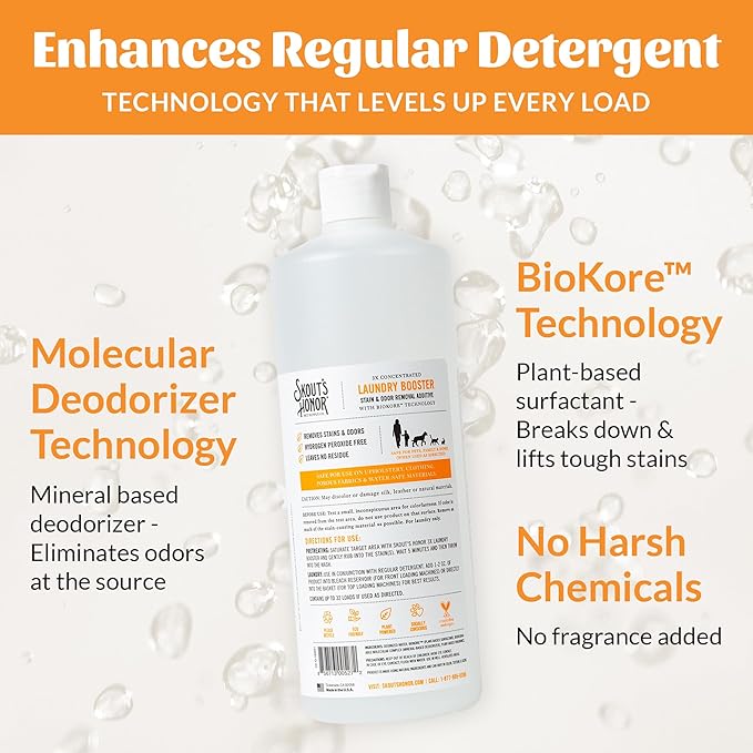 - Professional Strength - Skout's Honor Laundry Booster offers professional-grade cleaning power, providing deep cleaning to tackle even the toughest pet stains and odors. Non-toxic