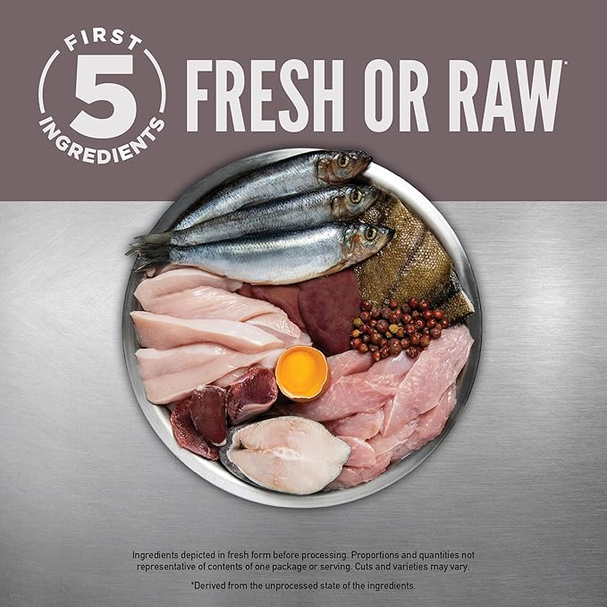 - First five ingredients are fresh or raw*** poultry and fish, so your cat can get a high protein cat food with the essential protein, vitamins and minerals they need