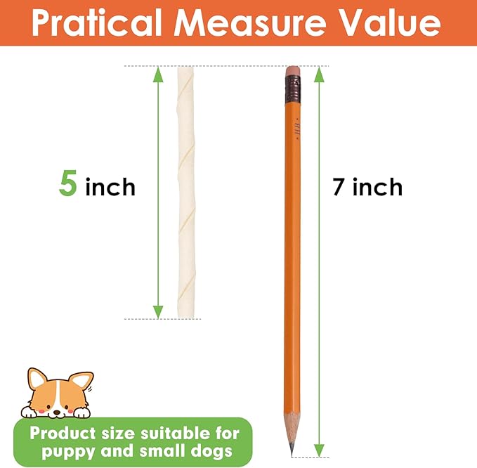 - The length of the sticks is 5-inch and7 MM thick. Only for puppy and small dogs.