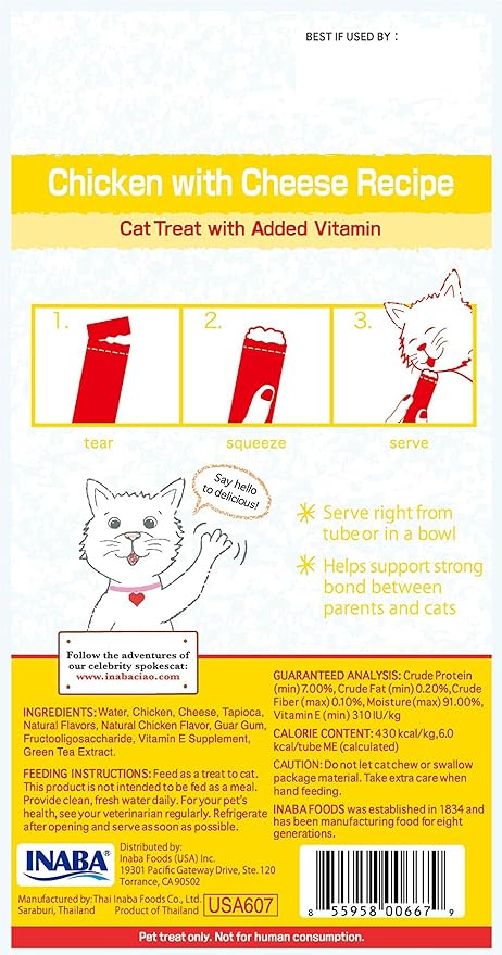 - MADE WITH WHOLESOME INGREDIENTS YOU CAN TRUST: Every Inaba product is made with yummy ingredients including farm-raised chicken and/or wild-caught tuna