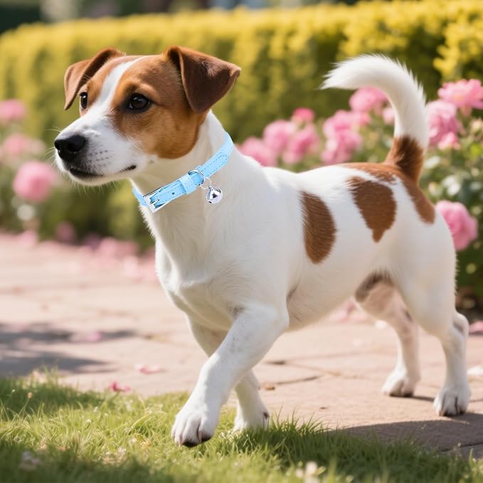 PUPTECK 2 PCS Soft Genuine Leather Cat Kitten Collar with Bells Adjustable for Girl Boy Cats Puppy - Pink, Blue