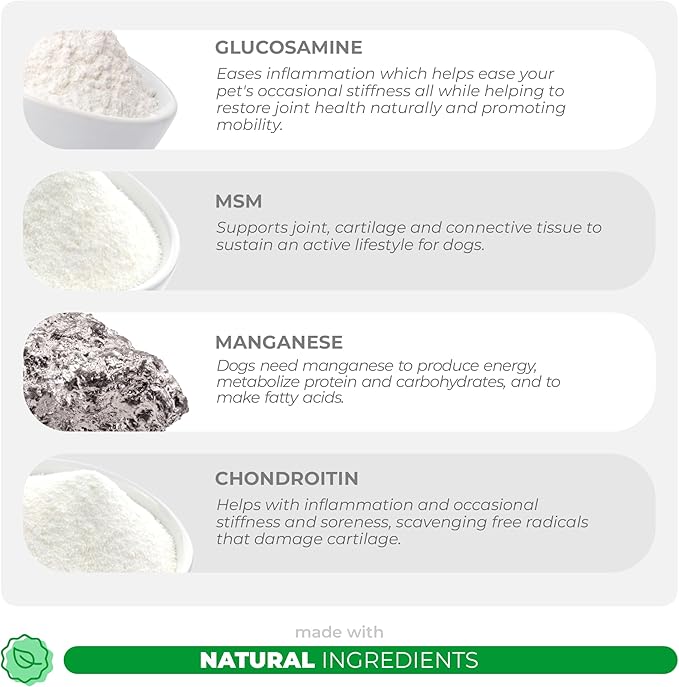Joint Supplement for Dogs - 120 Chewable Tablets - with Glucosamine, Chondroitin, MSM and Manganese for Hip, Tissue, and Mobility Support, Dog Joint Pain Relief