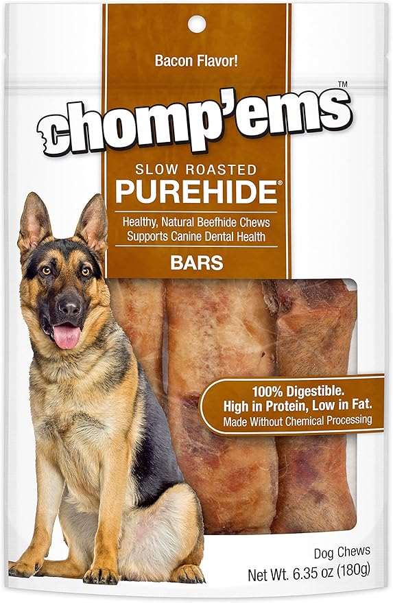 - Purehide Beefhide Bacon Flavor Bars 6.35oz. 100% digestible beefhide chews are slow roasted to lock in bacon flavor dogs love.
