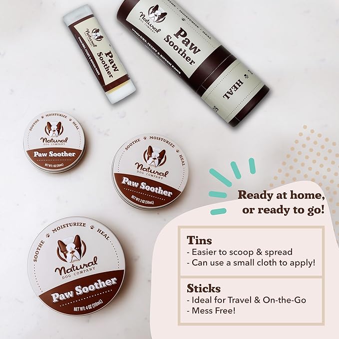 Natural Dog Company Paw Soother Balm & Wax for Dogs 4 oz Tin – Organic Moisturizing Relief for Dry, Cracked Paws, Lick - Safe–Repairs & Heals–Protects Against Extreme Weather – Coconut Oil & Vitamin E