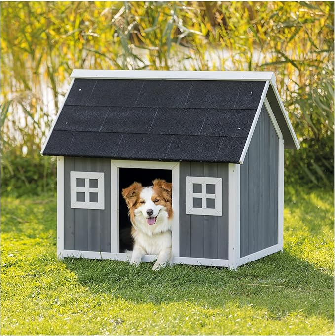 - DESIGN: The dog house for outside in grey & white barn style complements any backyard perfectly. TRIXIE's dog houses are also available in other designs & sizes, find the right shelter for your dog