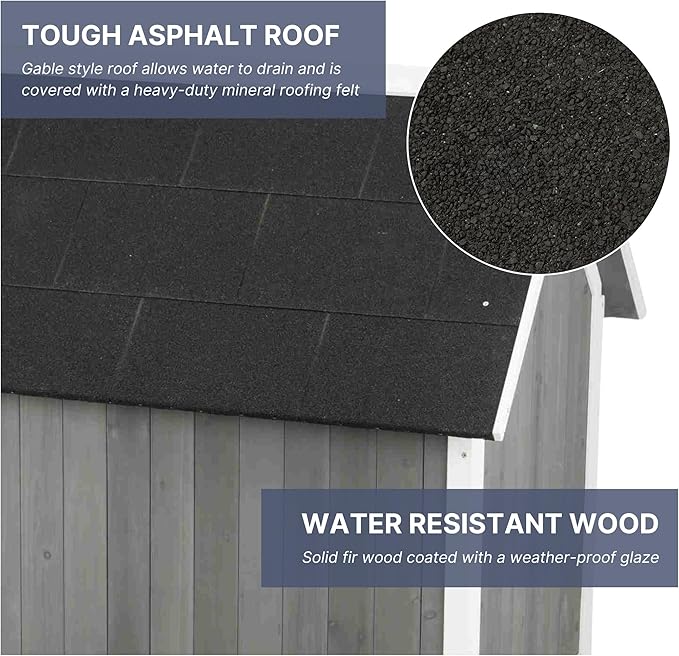 - DURABLE: The outdoor dog house consists of a strong & sturdy pine construction. Heavy-duty mineral roofing felt and a weatherproof sealer provide ultimate protection for long-term outdoor use
