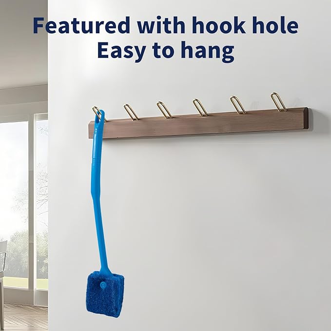 SLSON Aquarium Algae Scraper Double Sided Sponge Brush Cleaner Long Handle Fish Tank Scrubber for Glass Aquariums and Home Kitchen,15.4 inches (1)