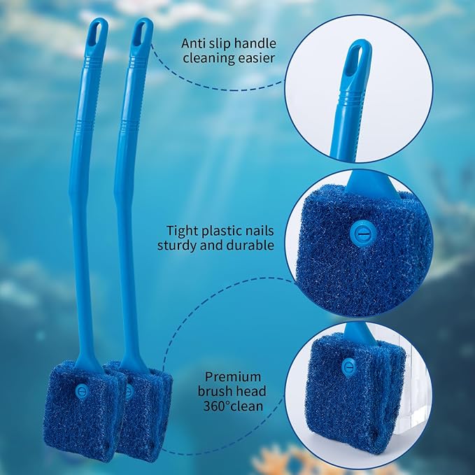 - HIGH QUALITY BRUSH:the aquarium brush made of high quality sponge,it could remove the alge quickly and effectively,keep your fish tank inhabitants a clean environment.