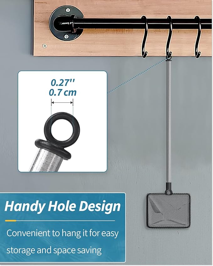 - For Versatile Use: Perfect net to securely catch or transfer fish or shrimp. Also excellent for skimming debris, wastes or leaves from aquariums, small ponds or pools to keep them clean.
