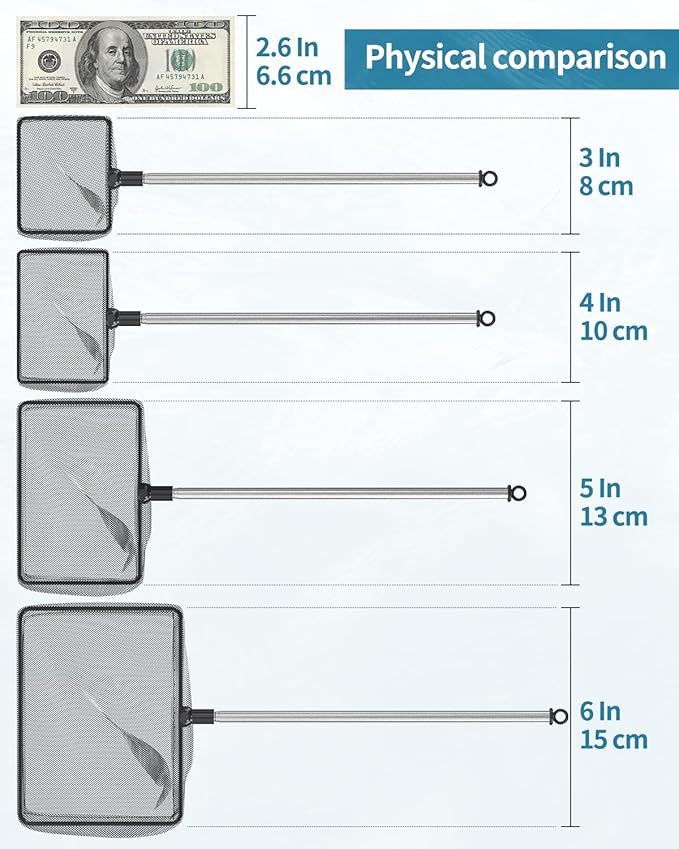 - Fine Nylon Mesh: The well-woven soft nylon mesh reduces the risk of injuries to delicate fish during transfer. Especially suitable for shrimp, newborn fry, betta, etc.