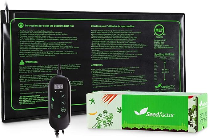 Seedfactor MET Certified Seedling Heat Mat with 50℉~108℉ Digital Thermostat Controller for Seed Germination (10" x 20")