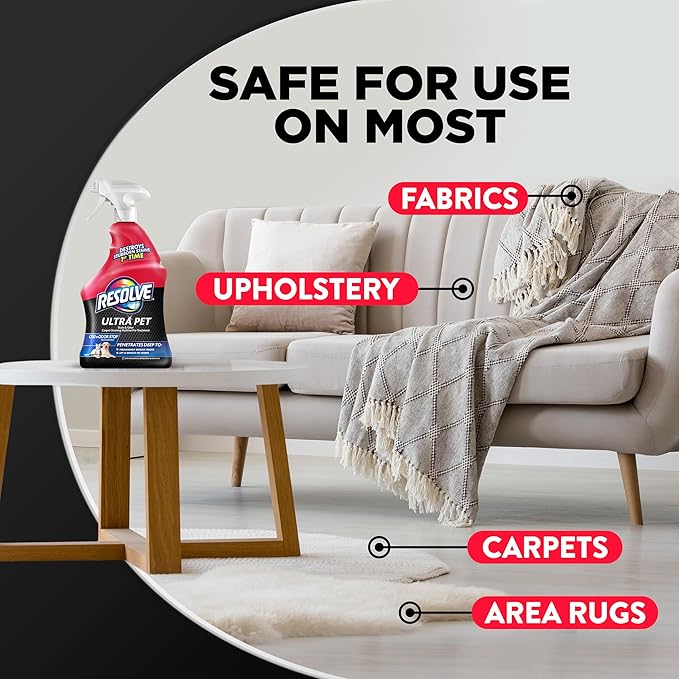 Resolve Ultra Pet Odor and Stain Remover Spray – Carpet Cleaner for Cat and Dog Urine and Poop, 32oz