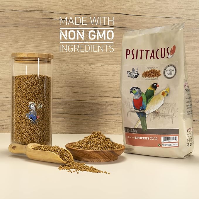 Psittacus Microspheres Wet & Dry 20/10 1.8 lb | for Chops and Salads Recipes, The Easiest One, Quick and Cold Preparation | Premium Pellet for Birds and Parrots, 100% Non-GMO