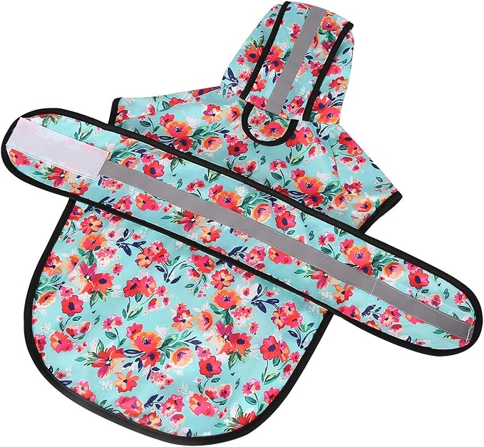 HDE Dog Raincoat Jacket Reflective Adjustable Hooded Pet Poncho Rain Coat with Leash Hole for Small to X-Large Dogs Turquoise - S