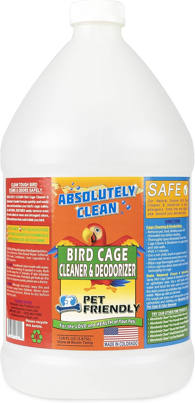 Absolutely Clean Amazing Bird Cage Cleaner and Deodorizer - Just Spray/Wipe - Safely & Easily Removes Bird Messes Quickly and Easily - Made in The US - Fragrance Free - 128oz Gallon