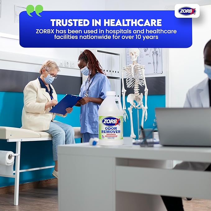 ZORBX Unscented Odor Eliminator for Strong Odor 64 oz - Used in Hospitals & Healthcare Facilities - Advanced Trusted Formula, Fast-Acting Odor Remover Spray for Dog, Cat, House & Carpet