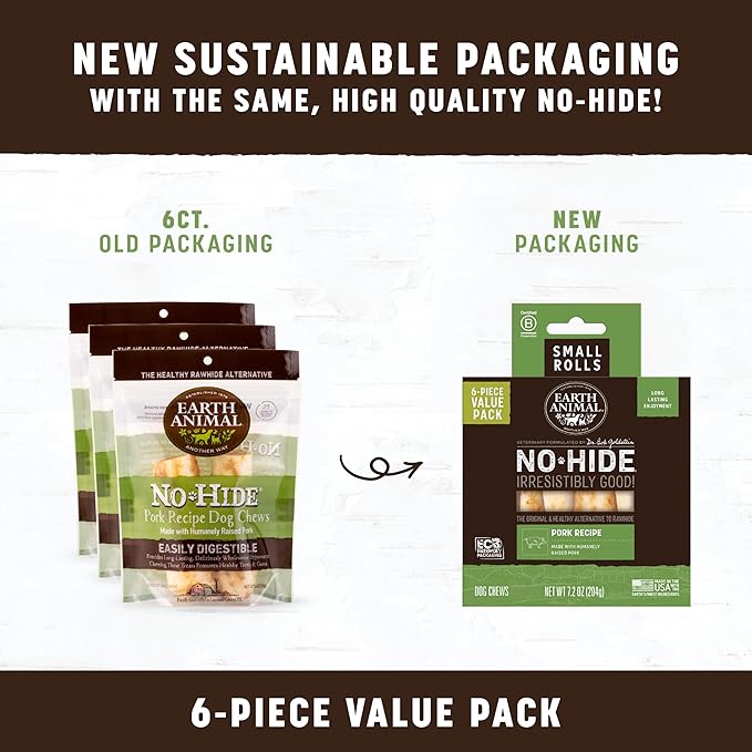 Earth Animal No Hide Small Long Lasting Dog Chew Rolls, Pork - 6 Count