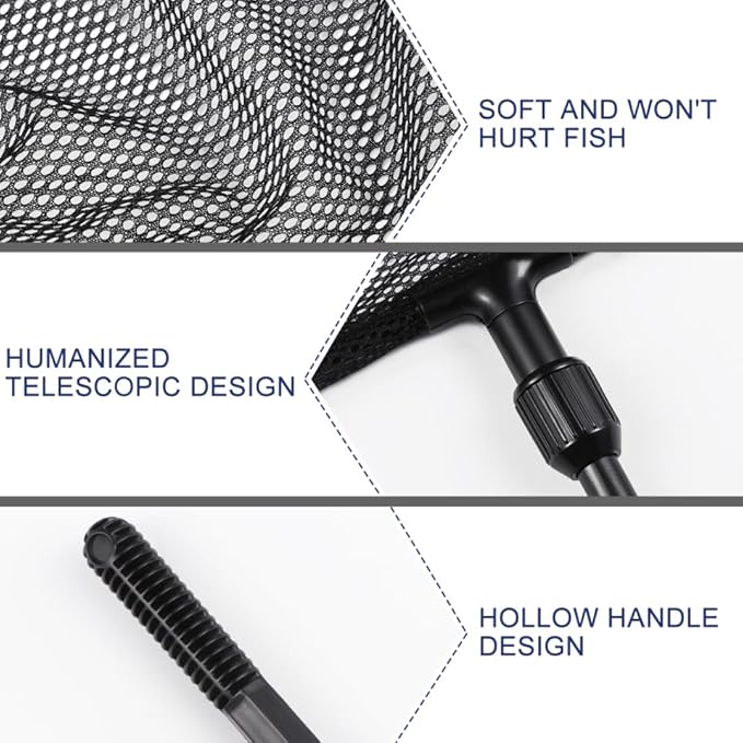 - Aquarium Fish Net with Extendable handle,the extending and retractable design of the pole make it easy to carry and store