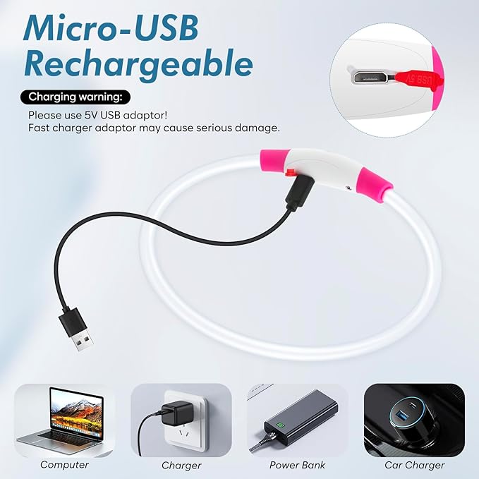- ★Efficient and Convenient Lighting for Your Pet with the Rechargeable LED Dog Collar: The LED Dog Collar features multiple flash modes, including steady glow, quick flash, slow flash, and off, offering versatile use. The collar light is conveniently recharged with a mini USB cable after use, making it an energy-saving and convenient option for your pet's nighttime adventures.