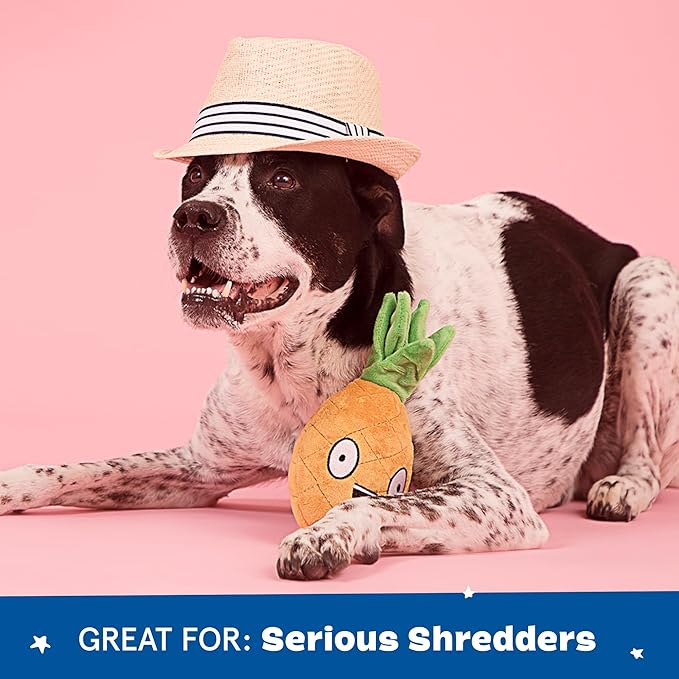 Barkbox Dog Toy 2 in 1 Interactive, Plush Exterior with Squeaker & Crinkle Material, Tearable Dog Toy with Squeaky Spikey Ball Inside, Ideal for Toy Destroyers - Penny The Pineapple, Large
