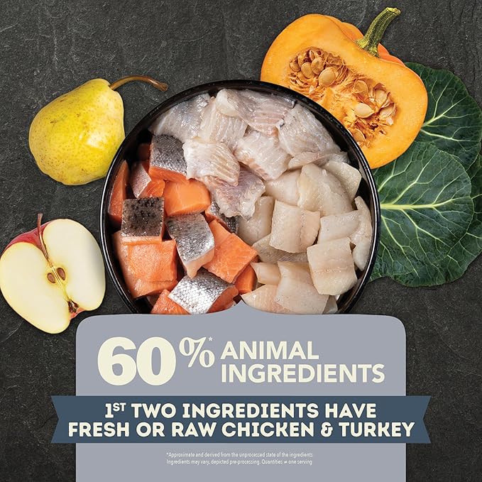 - High protein dry dog food kibble features 60 percent* high-quality animal ingredients and 40 percent** wholesome fruits and vegetables