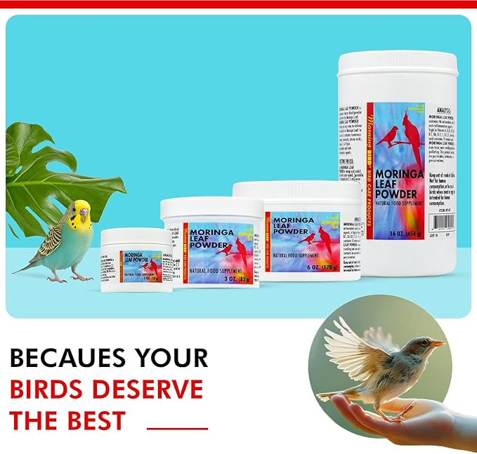 Morning Bird Moringa Leaf Powder 6 oz – Natural Food Supplement for Birds, Rich in Vitamins & Minerals, Boosts Immune System & Energy, Supports Healthy Feathers, Digestion, and Overall Avian Wellness
