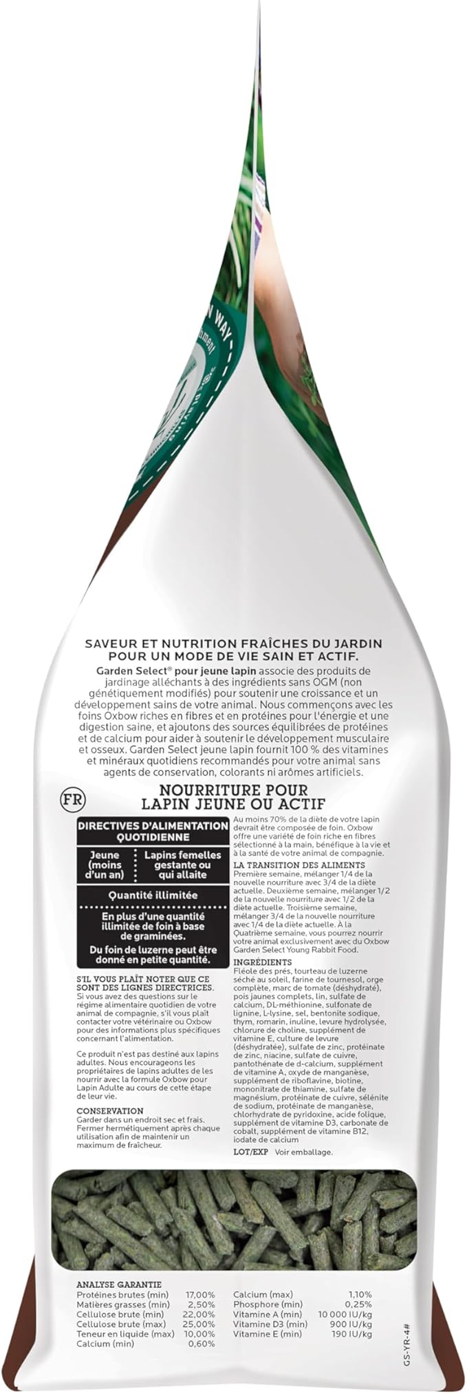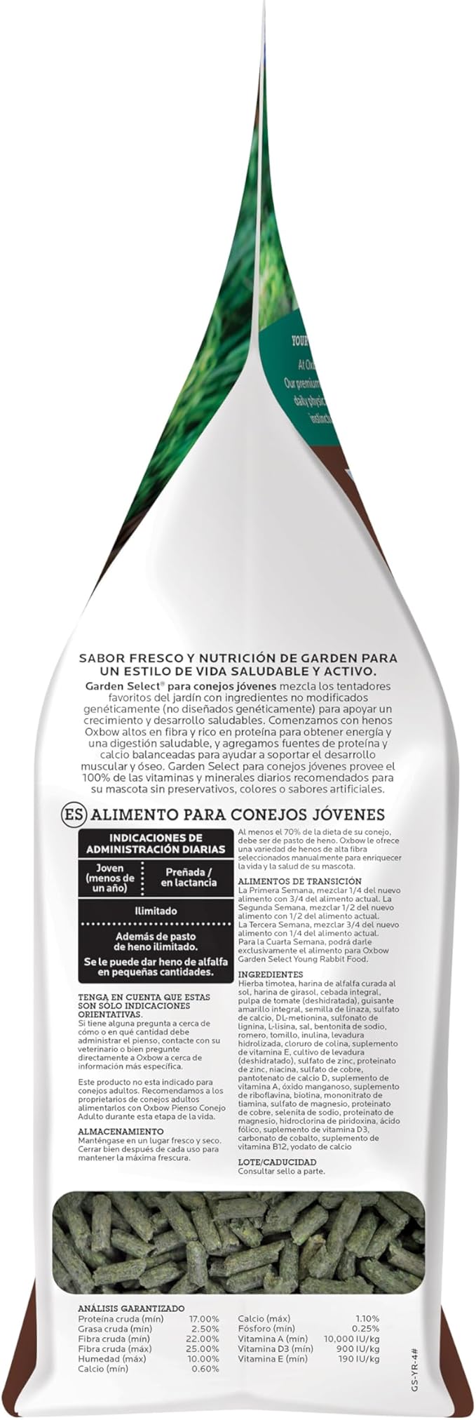 Oxbow Garden Select Rabbit Food, Young, Made Alfalfa for Rabbit, Bunny Food Pellets, Non-GMO, No Soy or Wheat, Small Animal Pet Products, Made in USA, High Fiber, 4 lb. Bag
