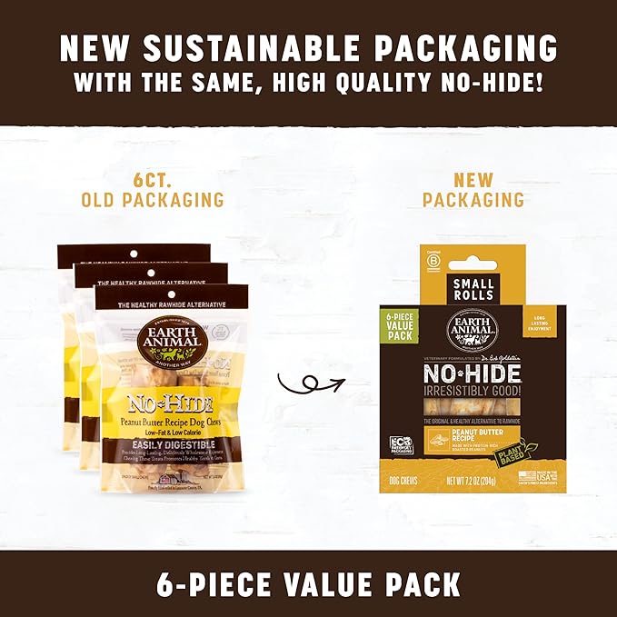 Earth Animal No Hide Small Long Lasting Dog Chew Rolls, Peanut Butter - 6 Count