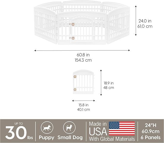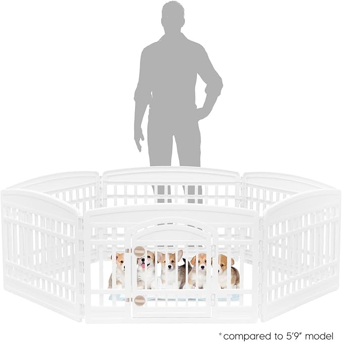 IRIS USA 24" 6-Panel Dog Playpen with Door, 61 x 61 x 24, Puppy Playpen, Dog Play Pen Indoors, Pet Fence, Puppies/Small Dogs, White