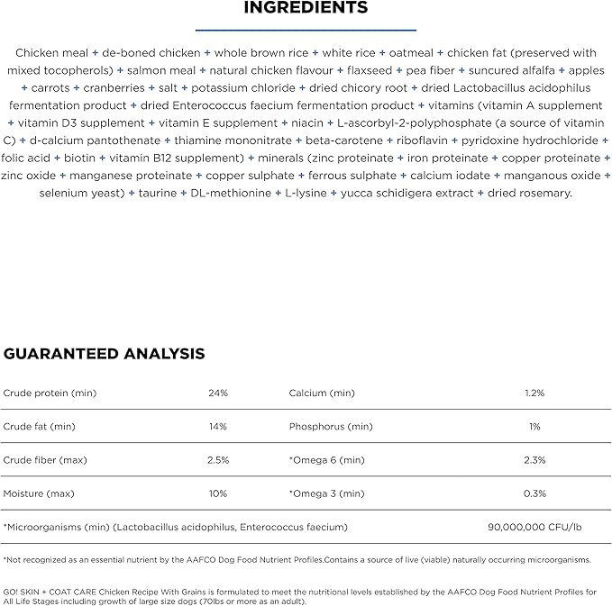 Go! Solutions Skin + Coat Care, Dry Dog Food, Chicken Recipe with Grains, 12 lb Bag