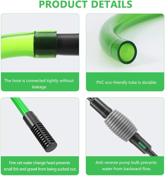 - 2 IN 1 MULTIFUNCTIONAL CLEANER - is for water changing and sand washing. The nozzle net prevents absorbing of juvenile fish, grass and gravel. Attached nozzle can help clean gravels which will effectively separates excrement and food residue from your aquarium, keep the water fresh.