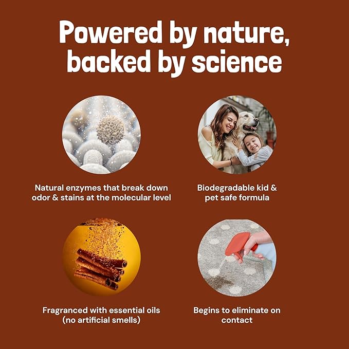 - Versatile and Reliable: Whether you're dealing with cat pee or a dog accident, this enzyme cleaner covers all bases. It doubles as a carpet deodorizer and upholstery cleaner, making your home inviting again